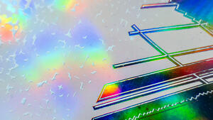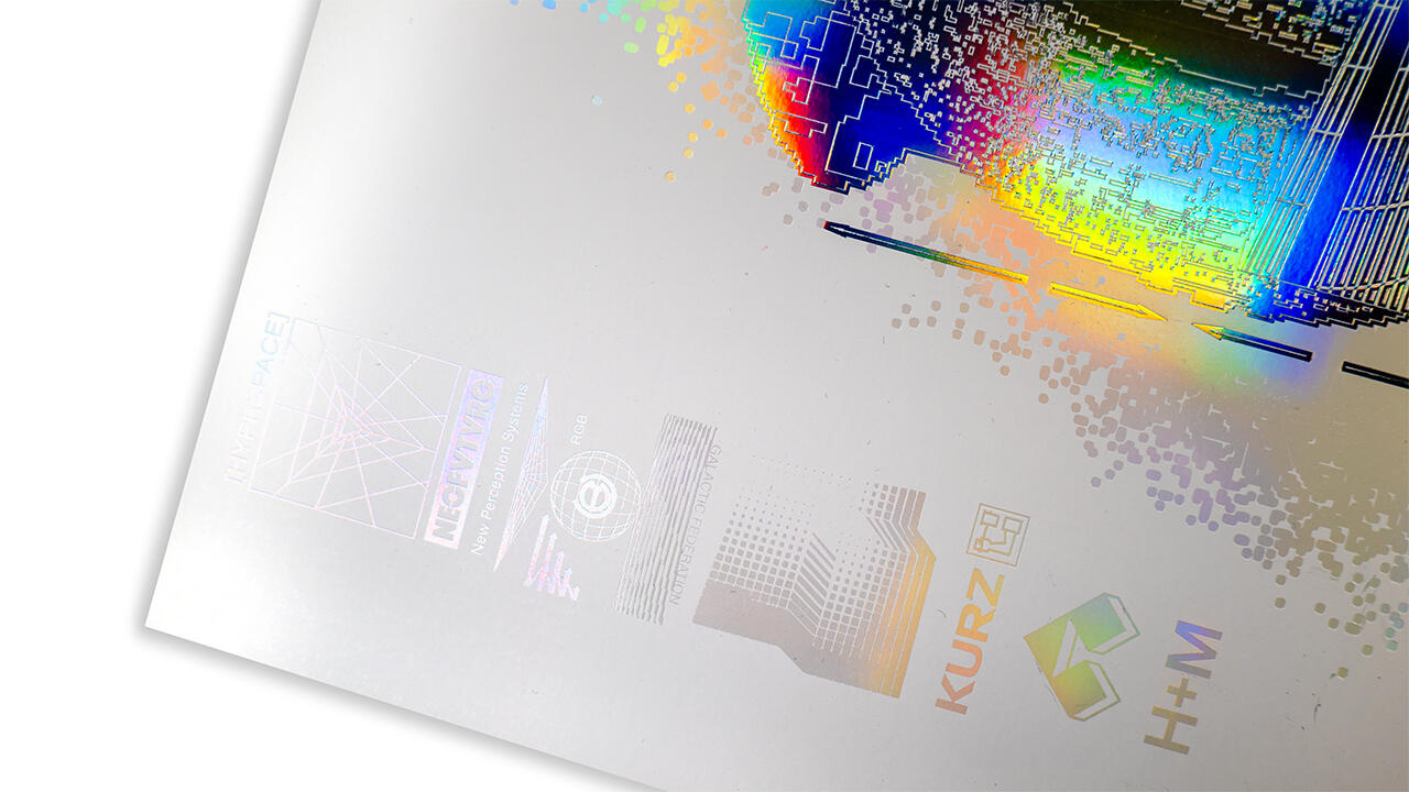 Two embossings were carried out on the 50 x 50 cm artwork using a BOBST hot stamping machine, which was operated by Abellan in Barcelona. In the first step, flat embossing was carried out using the transparent LIGHT LINE® Laser Seamless TS-XL, and in the second step, relief embossing was added using LIGHT LINE® Laser Seamless AL-XL. The embossing tools used for this were supplied by KURZ subsidiary H+M. A total of 500 copies were embossed in a limited edition.